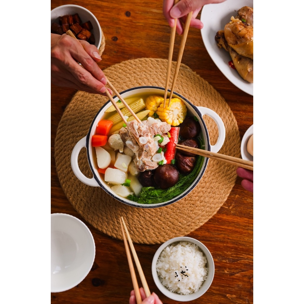 *只要簡單加水稀釋湯包,再放入喜愛的蔬菜如高麗菜、菜頭、玉米等火鍋料,濃郁湯頭就完成,完全不需額外高湯!