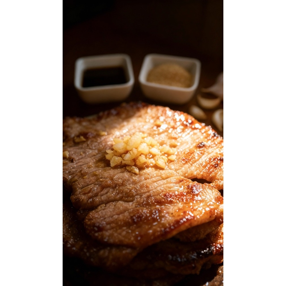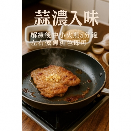 解凍後加點油.煎烤3-5分鐘即可食用 喜歡多汁燒肉的.建議快煎熟之後可以加1大匙水+1小匙醬油+少許糖.吃起來更多汁