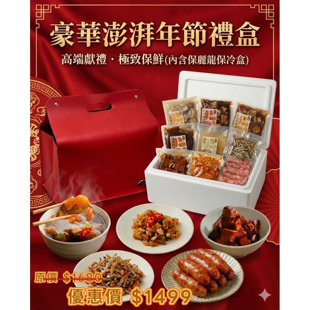 春節限定嫩骨彭湃禮盒,喜氣紅色皮盒搭配溫潤木把手,質感內斂、送禮體面。